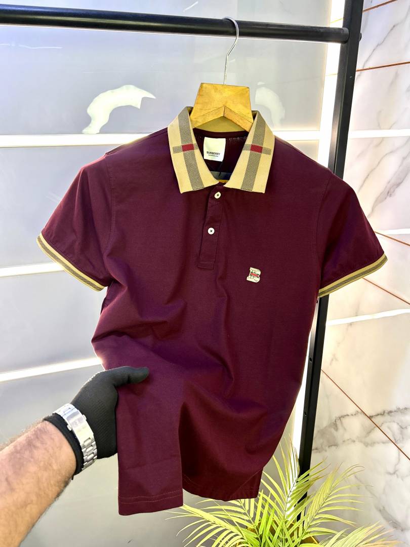 Burberr y Logo Wine Collar Neck Premium Polo T-shirt F2593-WI