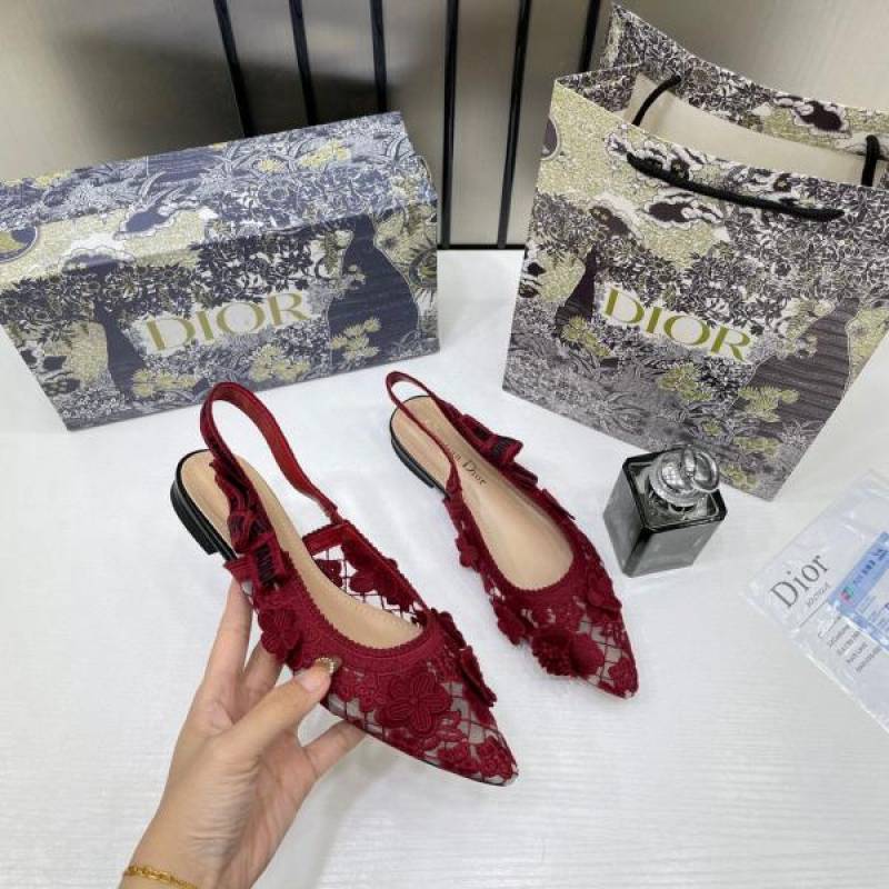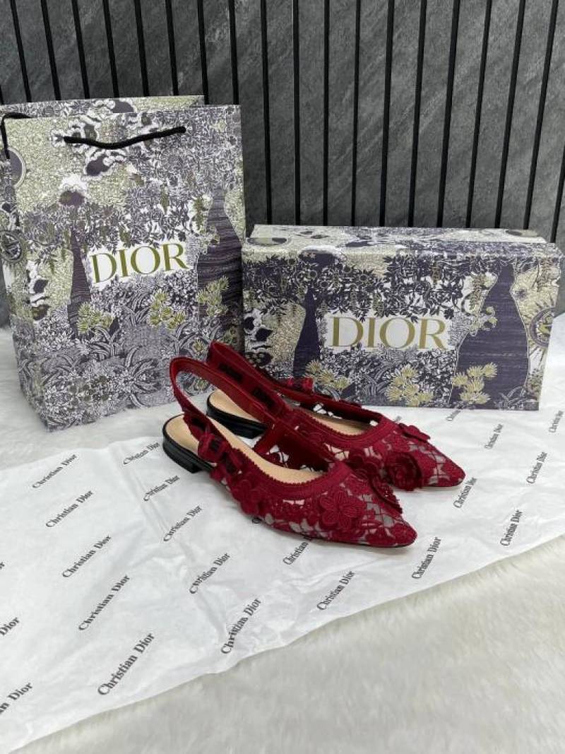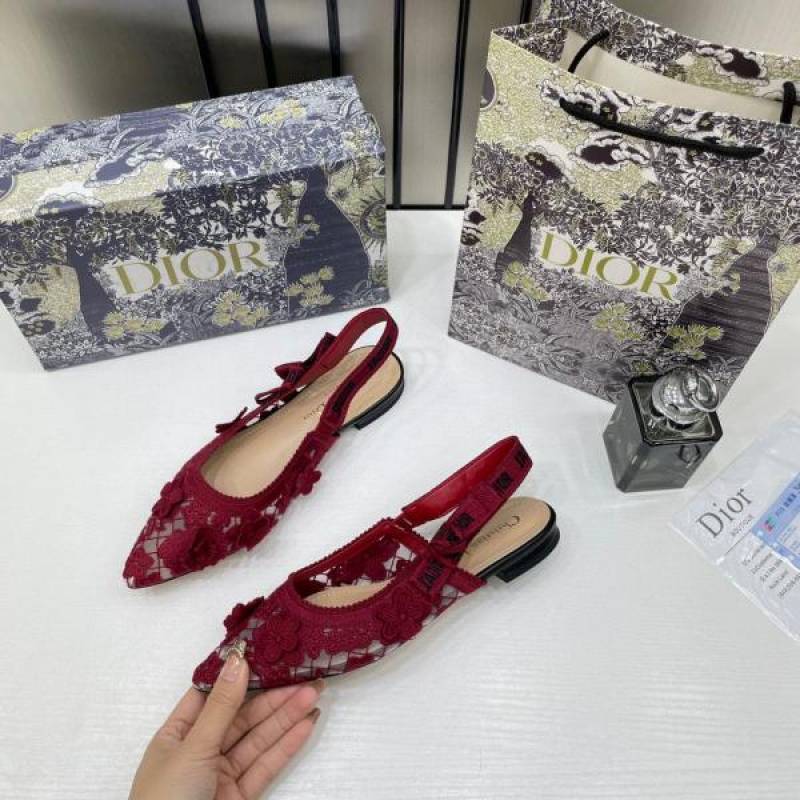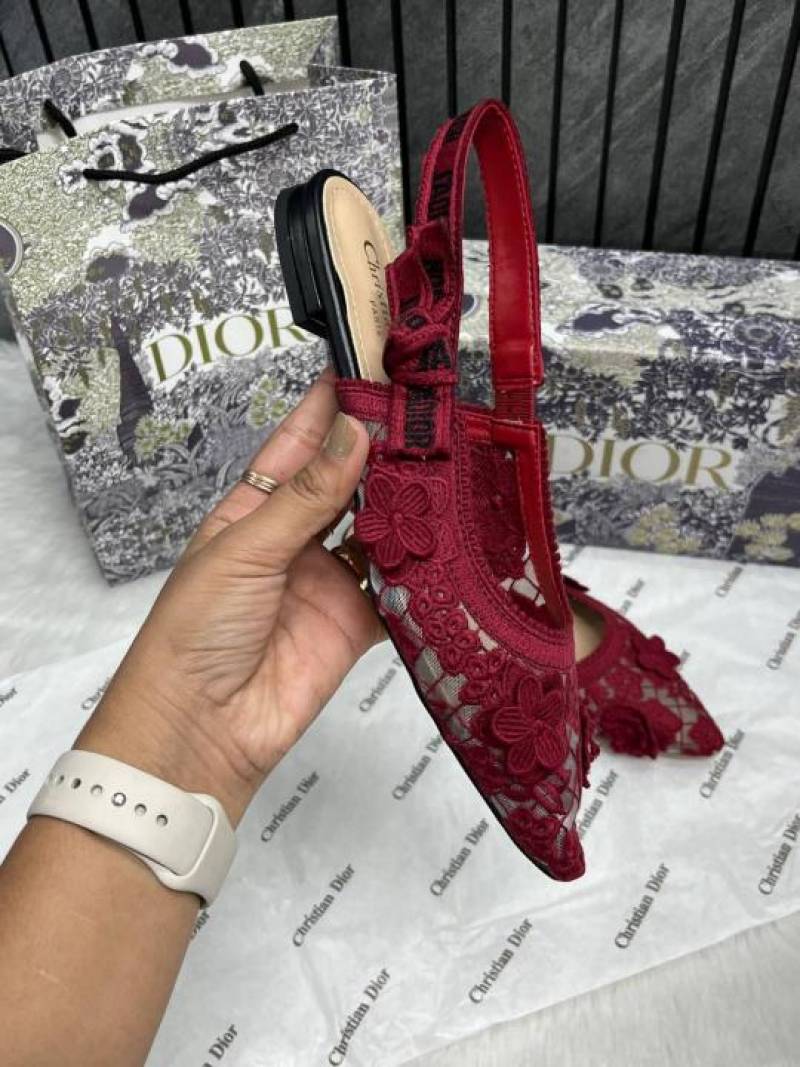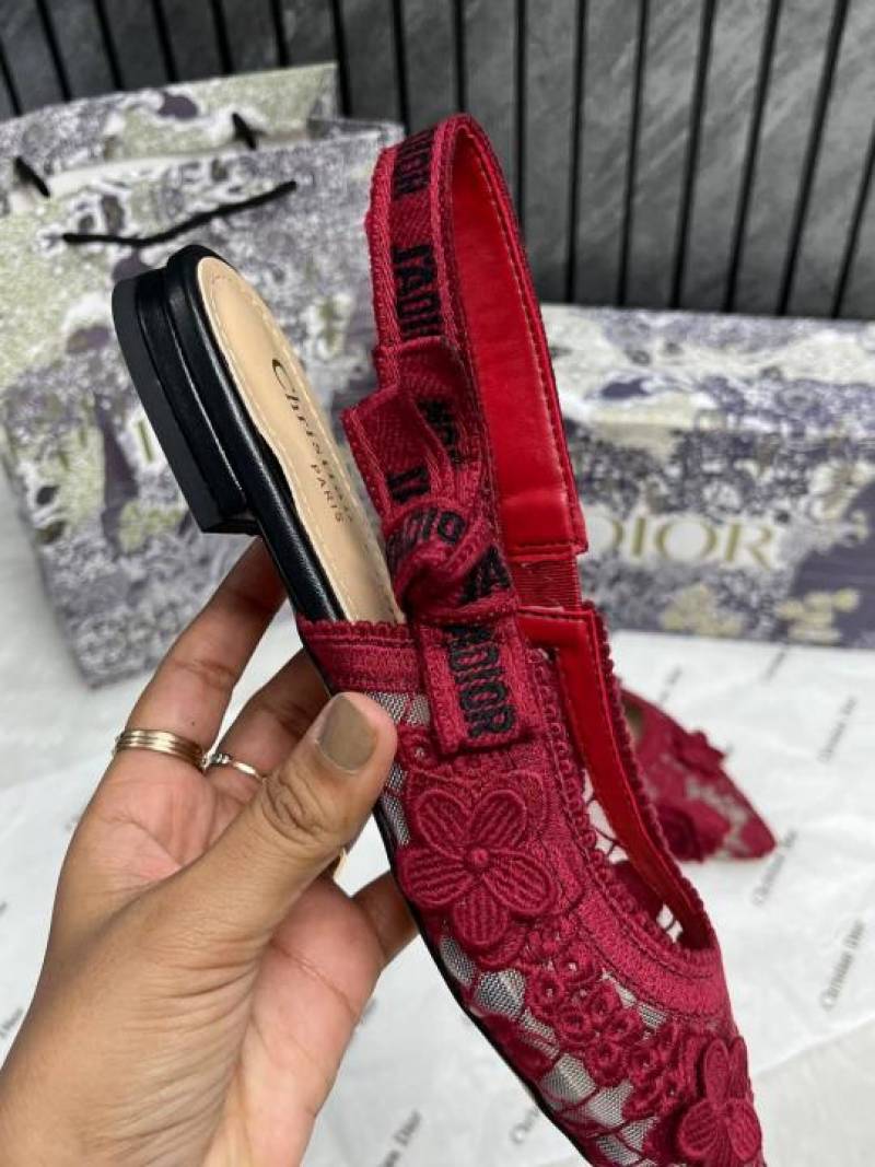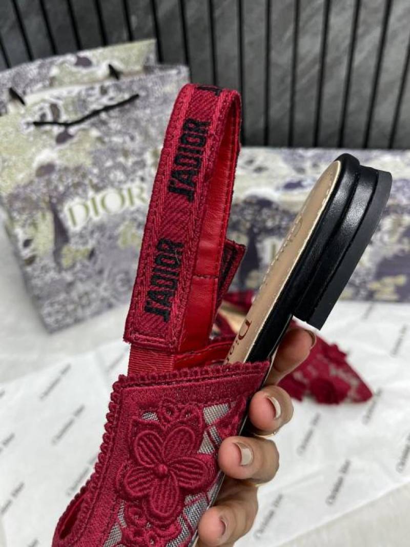 • Christian_Dior_JAdior_Slingback_Transparent_Mesh_Red_Dior_Embroidery_Flat_With_OG_Box_Dust_Bag_&_Carry_Bag
