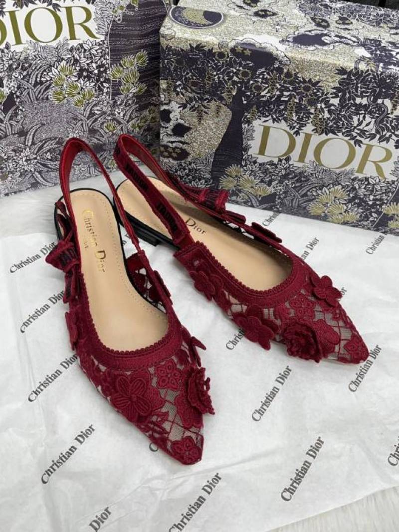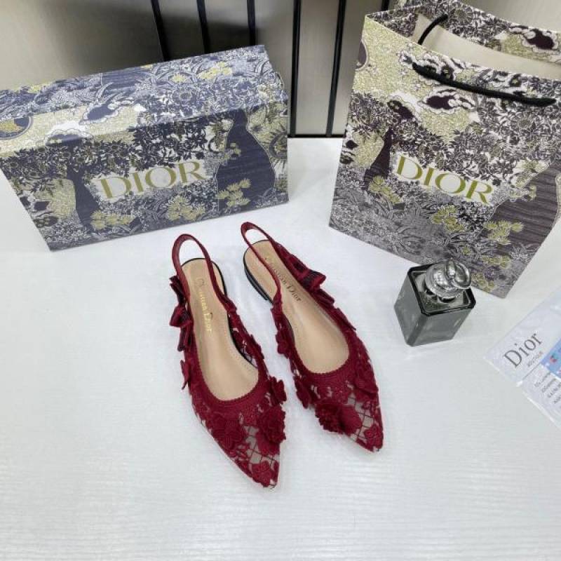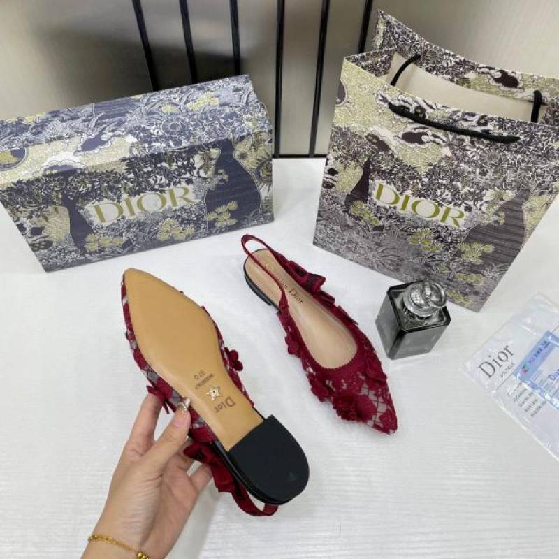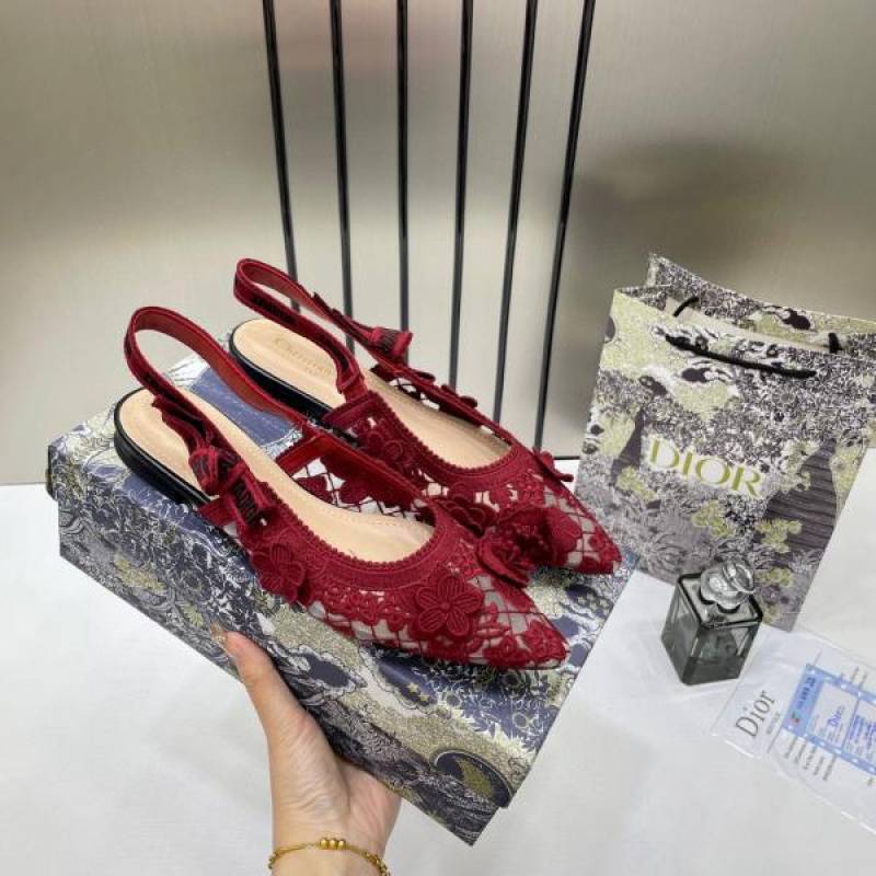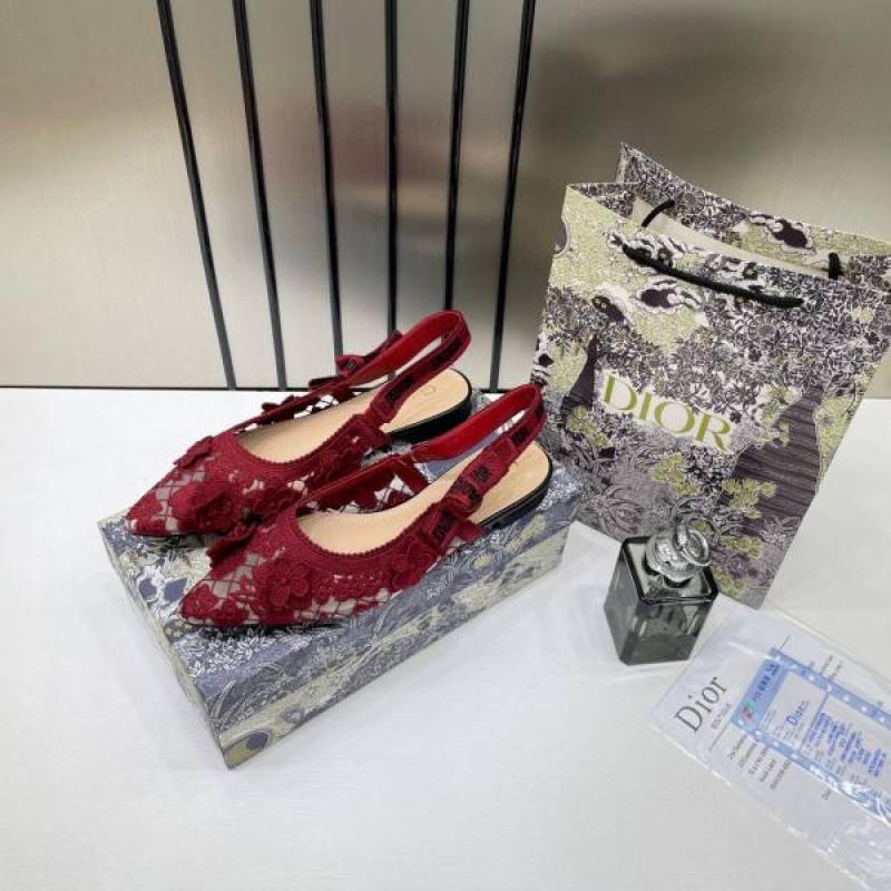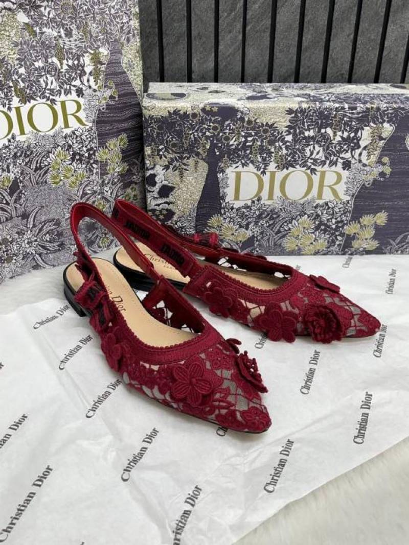 • Christian_Dior_JAdior_Slingback_Transparent_Mesh_Red_Dior_Embroidery_Flat_With_OG_Box_Dust_Bag_&_Carry_Bag