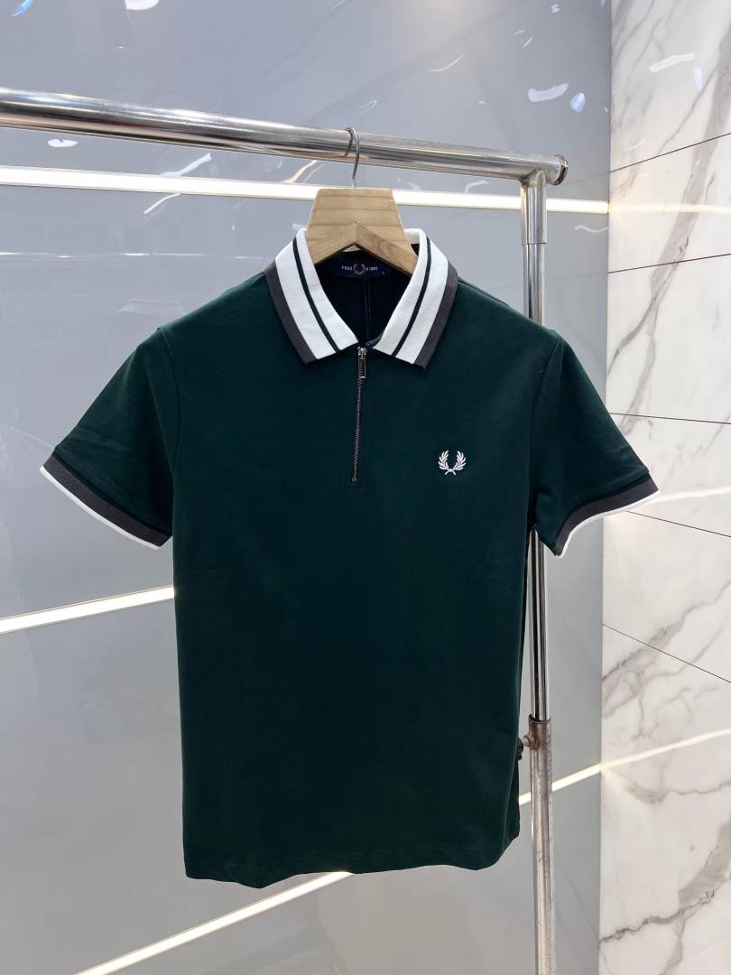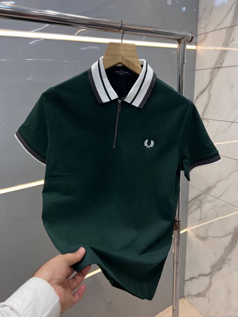 Fred Perr y Green Premium Imported Compact Yarn 240 GSM Interlock Fabric Polo Tshirt with Collar Design and Embroidered Logo Zip Style 2742
