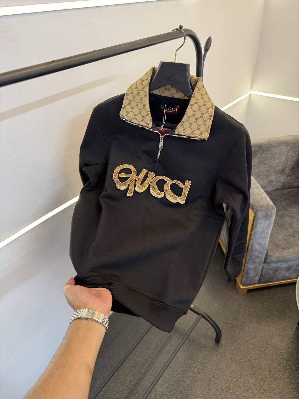 ? *Gucci imported half zip T neck imported sweatshirt with monogram collar and brand zip with front brand embroidery patch now in stock*?