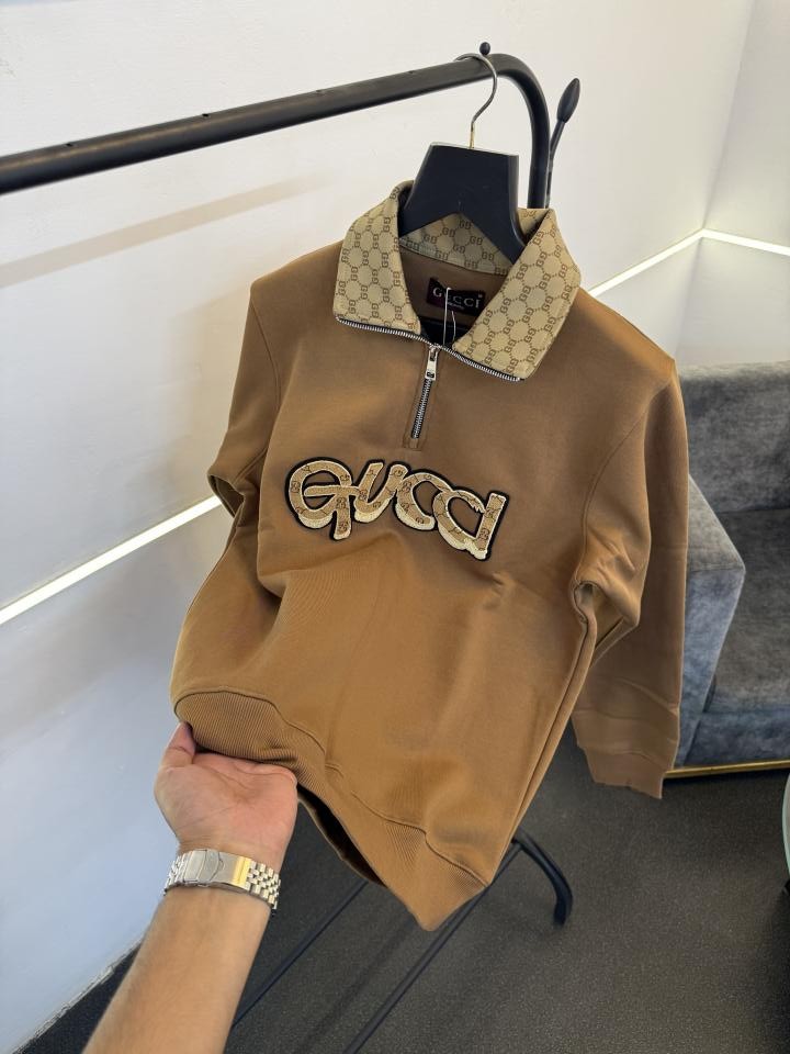 ? *Gucci imported half zip T neck imported sweatshirt with monogram collar and brand zip with front brand embroidery patch now in stock*?