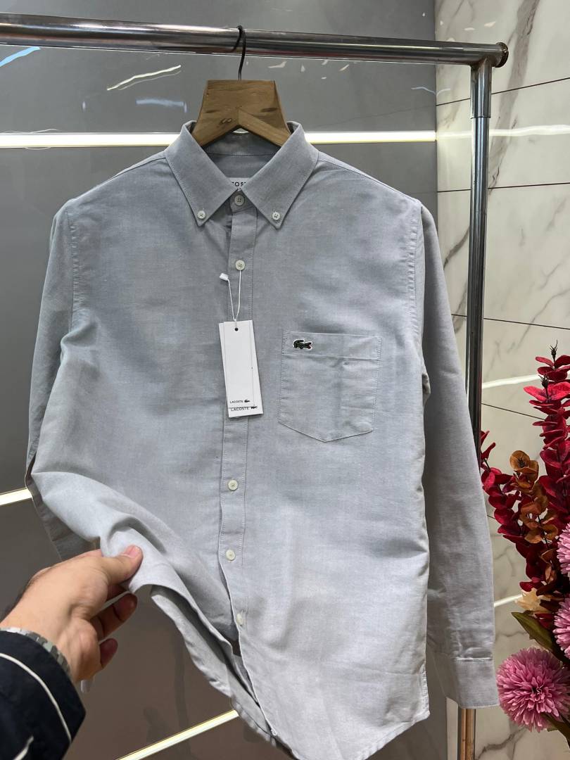 Lacost e Grey Premium Shirt 100% Oxford Cotton Fabric With custom Branded Button Tagging And Brand Poly Bag 3448