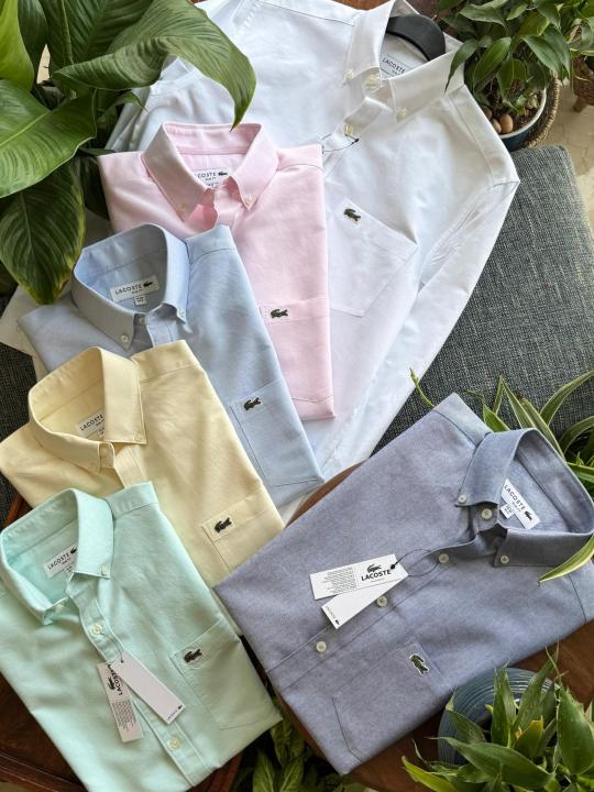 Lacost e Green Premium Shirt 100% Oxford Cotton Fabric With custom Branded Button Tagging And Brand Poly Bag 3444