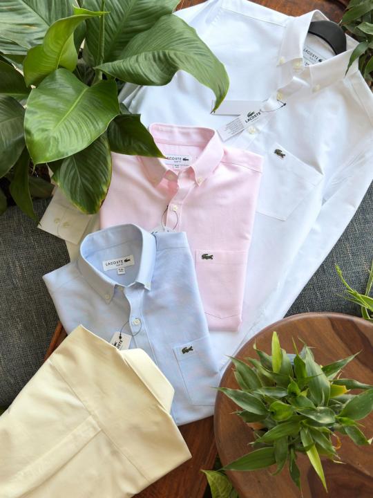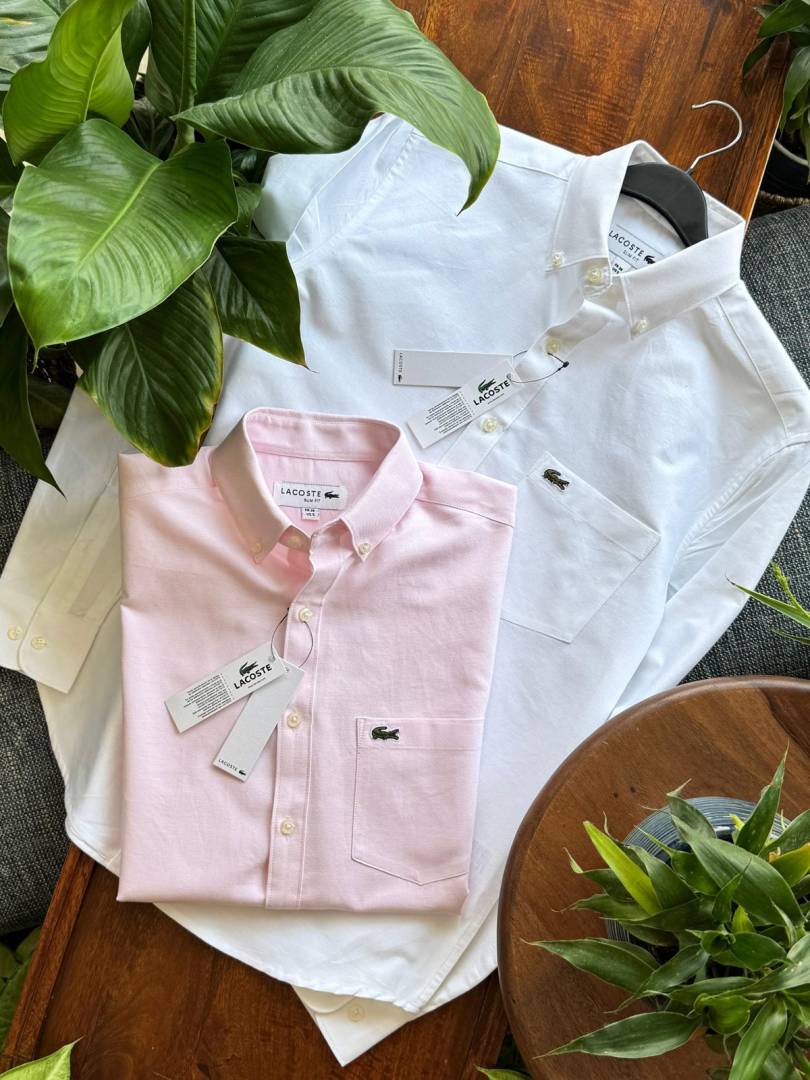 Lacost e White Premium Shirt 100% Oxford Cotton Fabric With custom Branded Button Tagging And Brand Poly Bag 3447