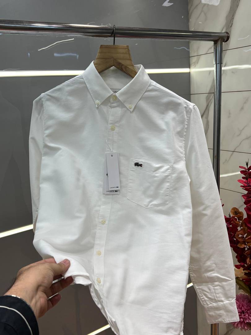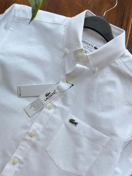 Lacost e White Premium Shirt 100% Oxford Cotton Fabric With custom Branded Button Tagging And Brand Poly Bag 3447