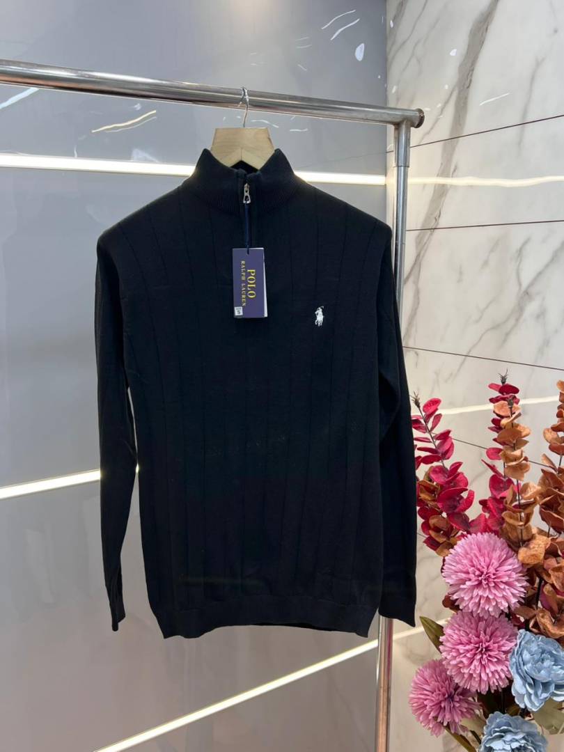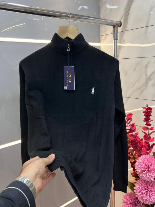 Ralph Laure n Black Premium Imported High Neck Knitted Pullover Half Zipper Style 3454