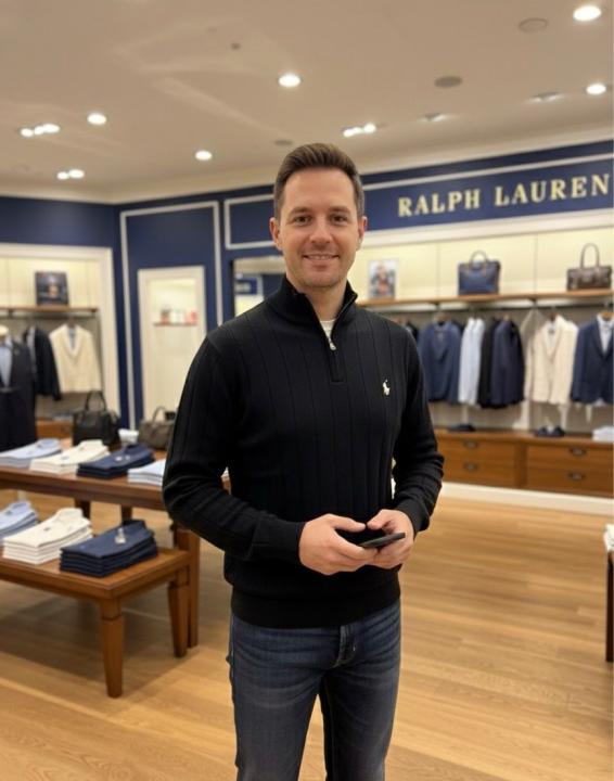 Ralph Laure n Navy Premium Imported High Neck Knitted Pullover Half Zipper Style 3451