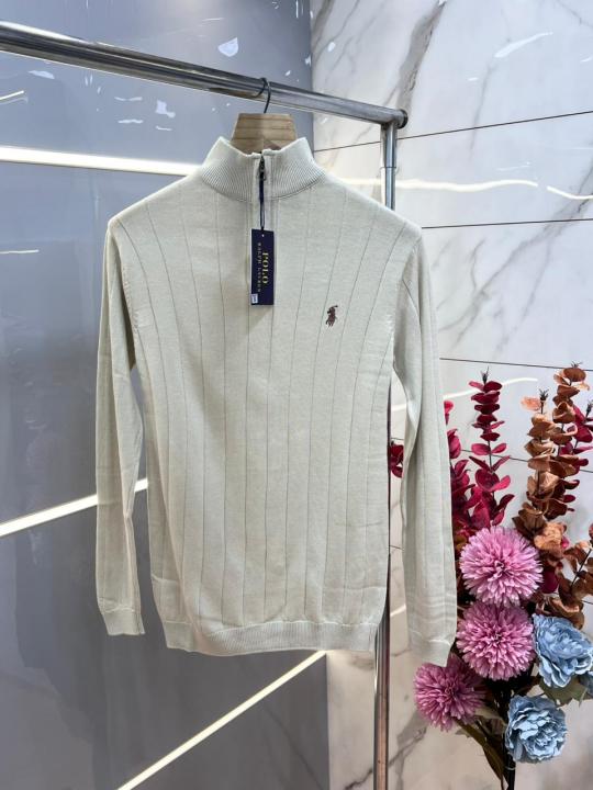 Ralph Laure n Cream Premium Imported High Neck Knitted Pullover Half Zipper Style 3453