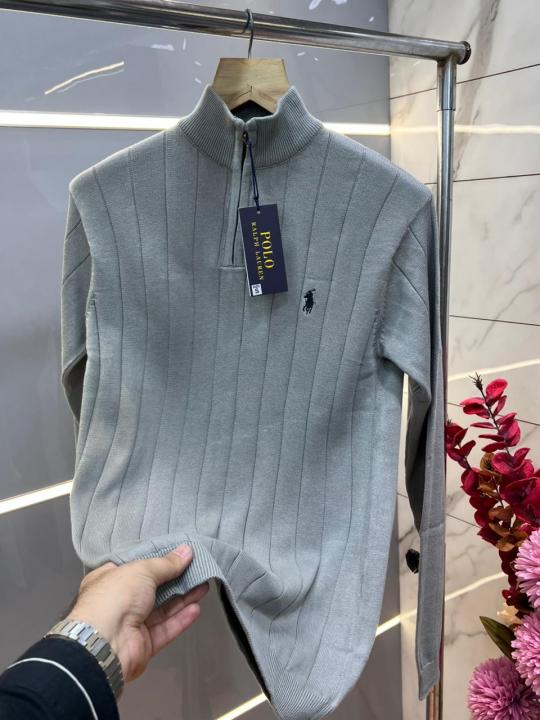 Ralph Laure n Grey Premium Imported High Neck Knitted Pullover Half Zipper Style 3452