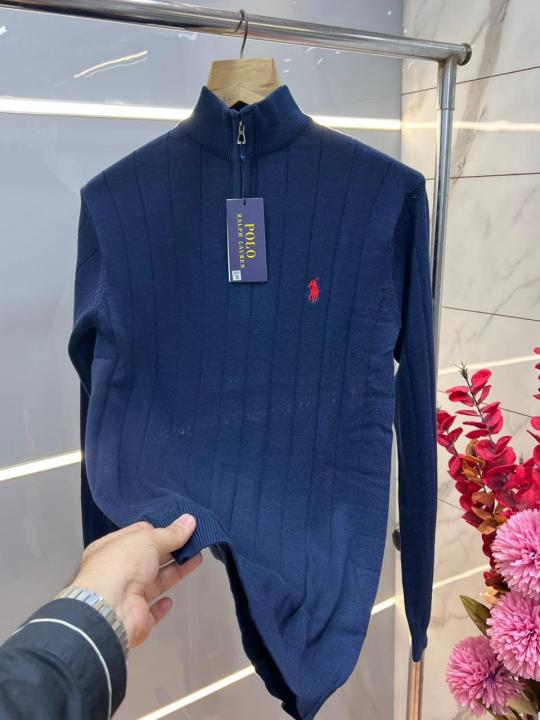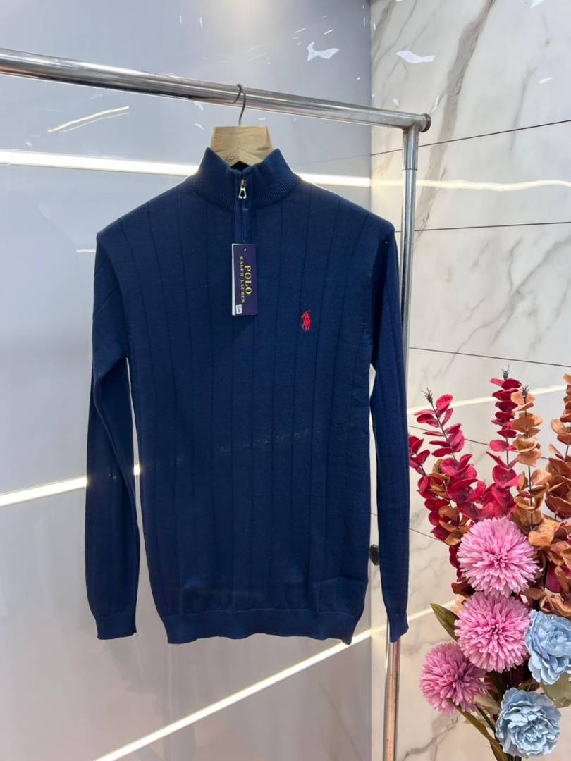 Ralph Laure n Navy Premium Imported High Neck Knitted Pullover Half Zipper Style 3451