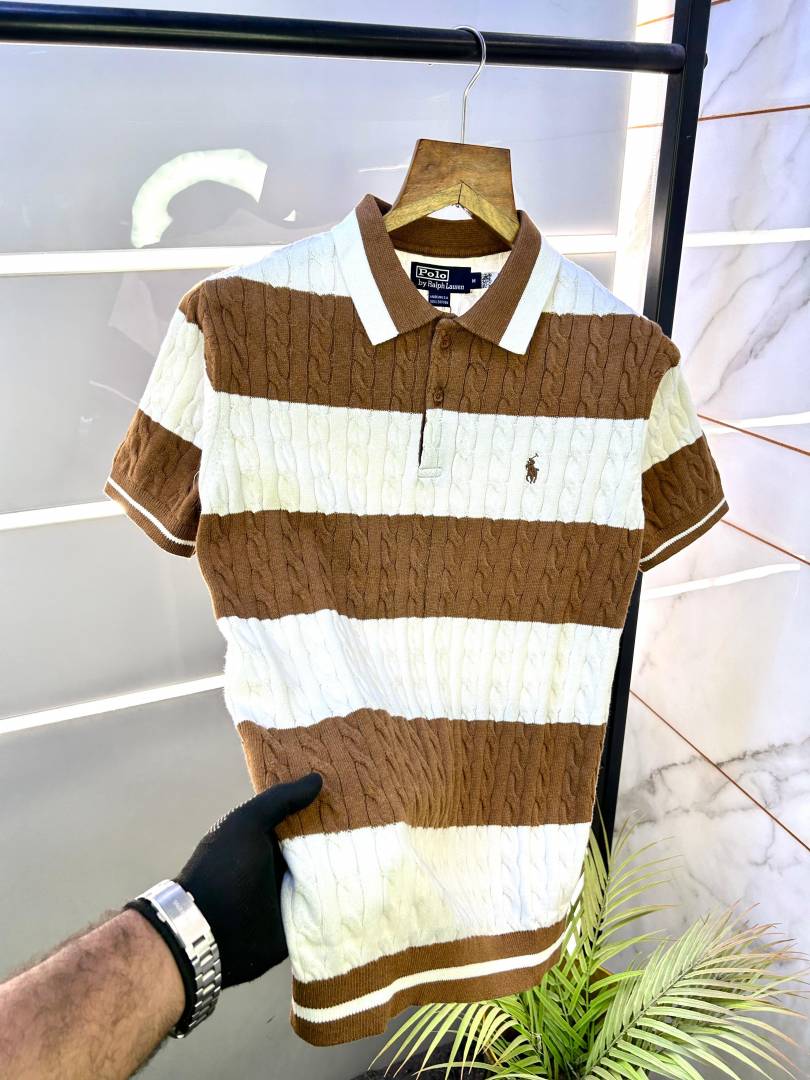 Ralph_Lauren Brown Imported Knitted Polo Collar Neck T-shirt F2805-BR