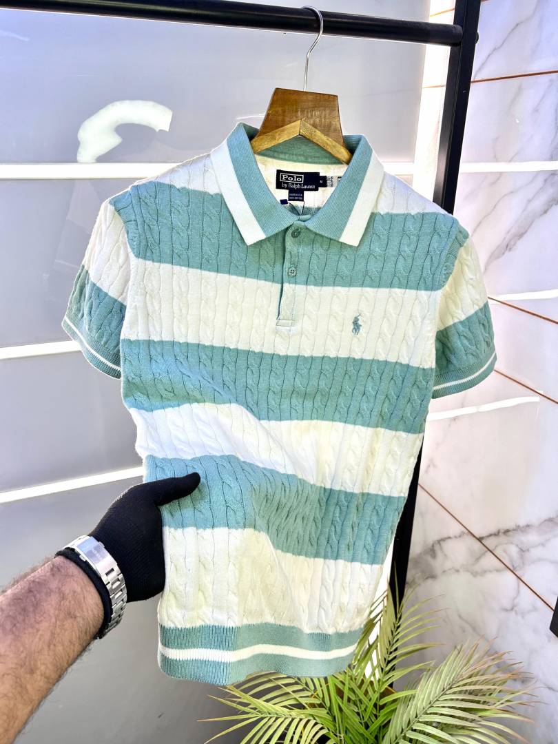 Ralph_Lauren Green Imported Knitted Polo Collar Neck T-shirt F2805-GR
