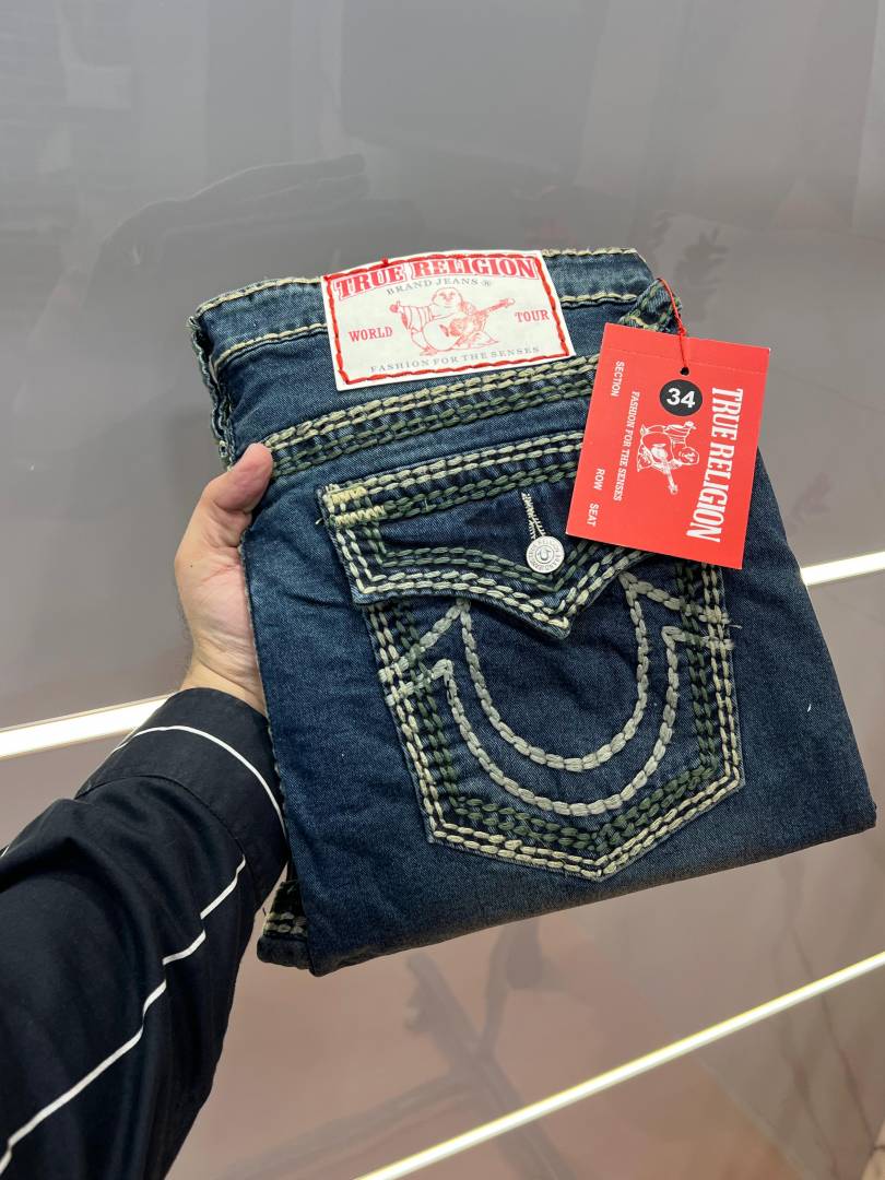 True Religio n Dark Shade Premium Imported Stretchable Lycra Fabric Straight fit Denim with Back Flap pocket Design 3434